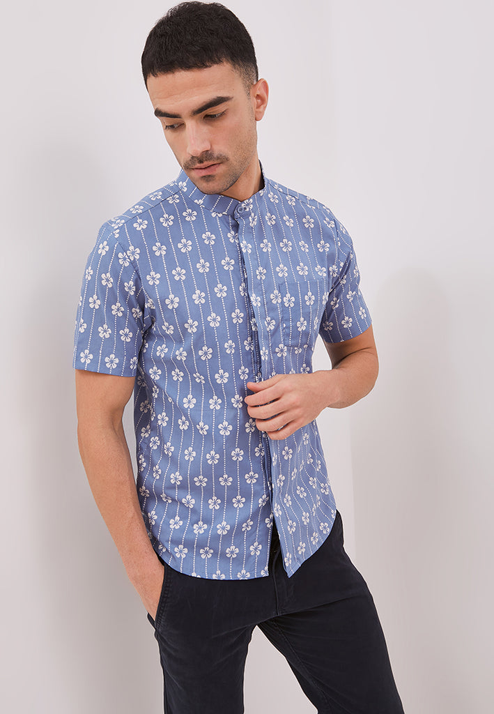FLOWER LIGHT BLUE Man Batik Shirt
