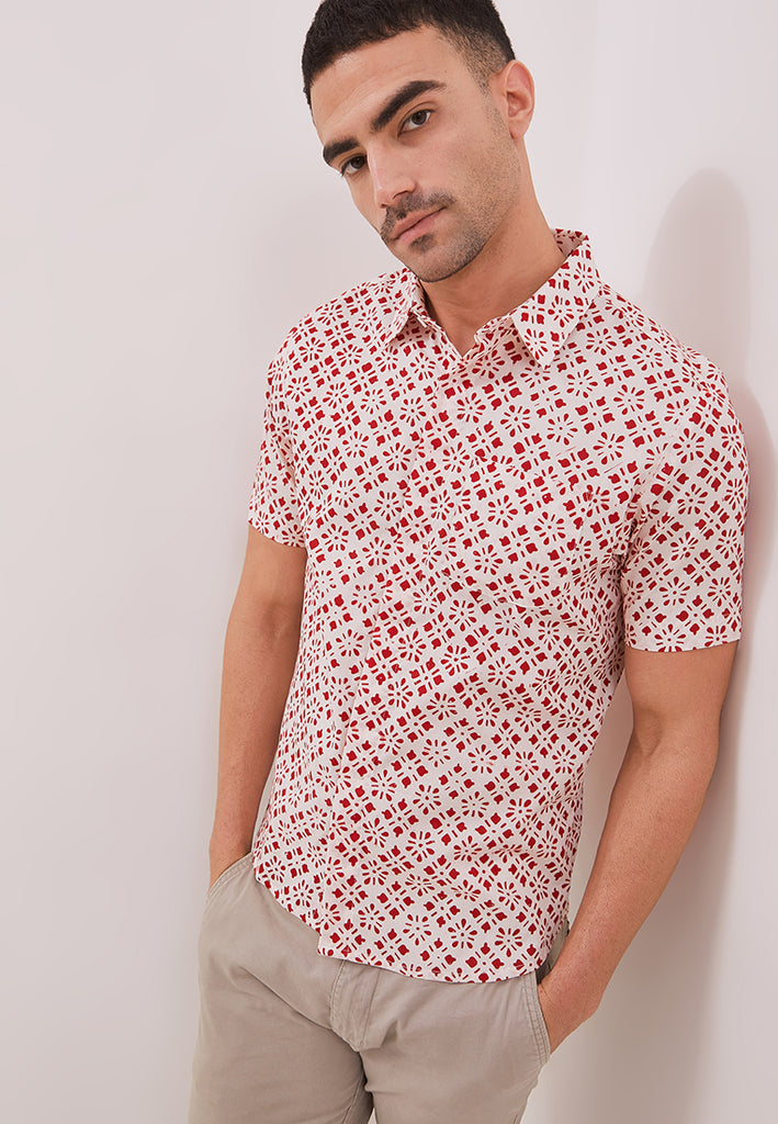TWINKLING STARS White Man Batik Shirt With Point Collar