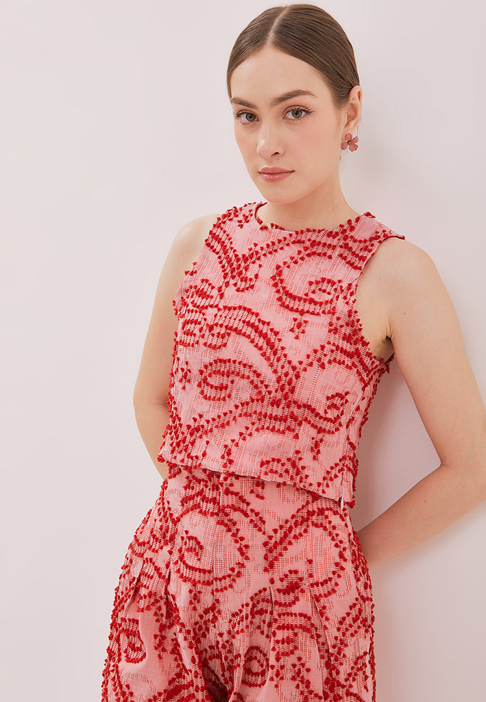 3D Tenun Pink Crop Top