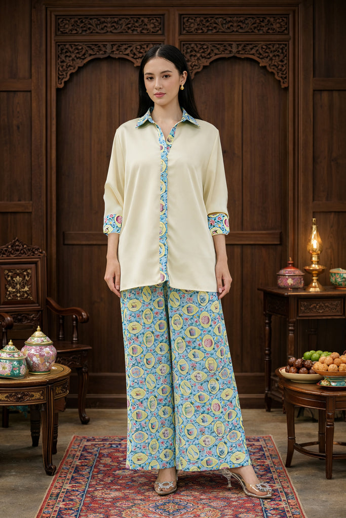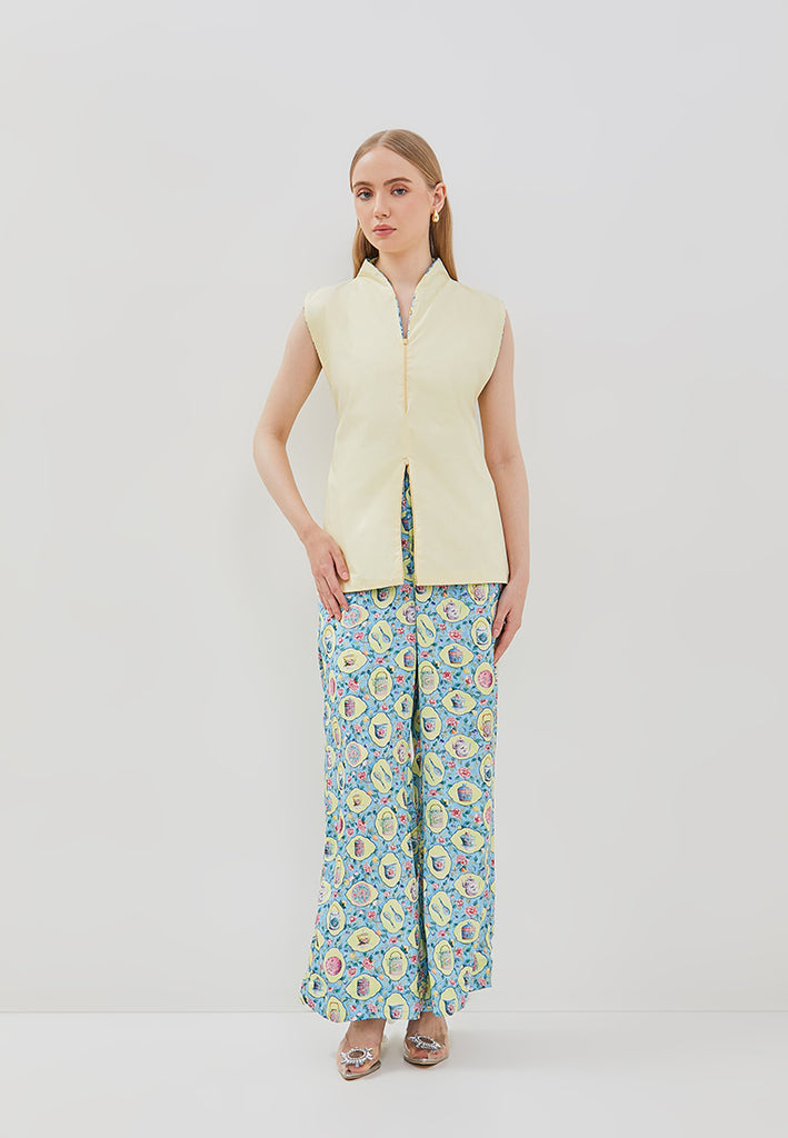 A beautiful straight pants in Peranakan Porcelain print, with elastic at the back, zipper and hook in front. Comes with 2 pockets.