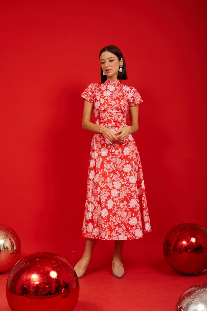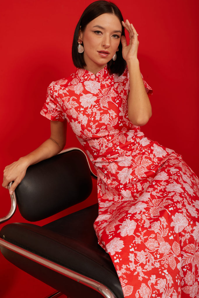 PERANAKAN PAWS Red Maxi Cheongsam Dress